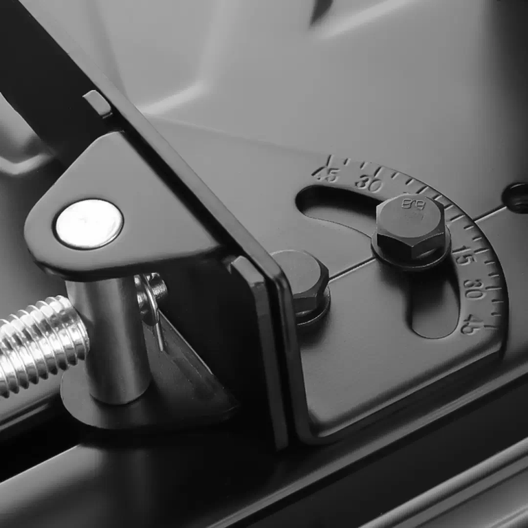 - دارای گونیای قابل تنظیم در زاویه 45 درجه برای ایجاد برش در دو موقعیت و همچنین مطابقت با سایزهای مختلف قطعات کار