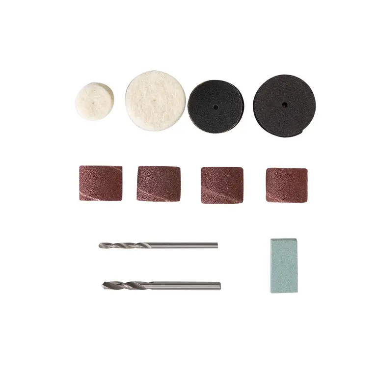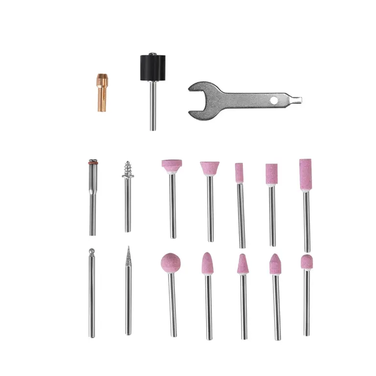 دربردارنده ۴۰ قطعه سری و متعلقات کاربردی ابزارآلات چرخشی برای انجام فعالیتهای سنبادهزنی، برش، سنگزنی، کندهکاری، تمیزکاری، پرداخت و … - سیستم قفلکن پین برای تغییر آسان آسان سری و متعلقات کاربردی و افزایش ایمنی کاربر