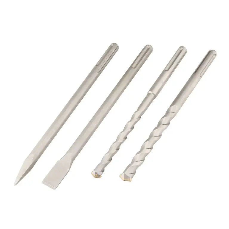 متعلقات : کیف ابزار همرا ه با 5 مته یک مته 16×320 میلی متر، یک مته 18×320 میلی متر، یک مته 22×320 میلی متر، یک عدد قلم نوک تیز 25×350 میلی متر، یک عدد قلم سر تخت 25×350 میلی متر، محافظ لاستیکی ضدغبار ، عمق سنج ، ظرف گریس، دسته جانبی